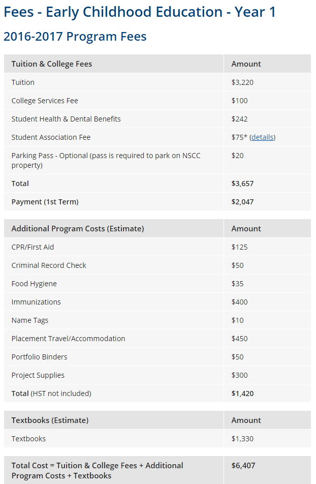 NSCECE의 학비를 살펴보겠습니다.